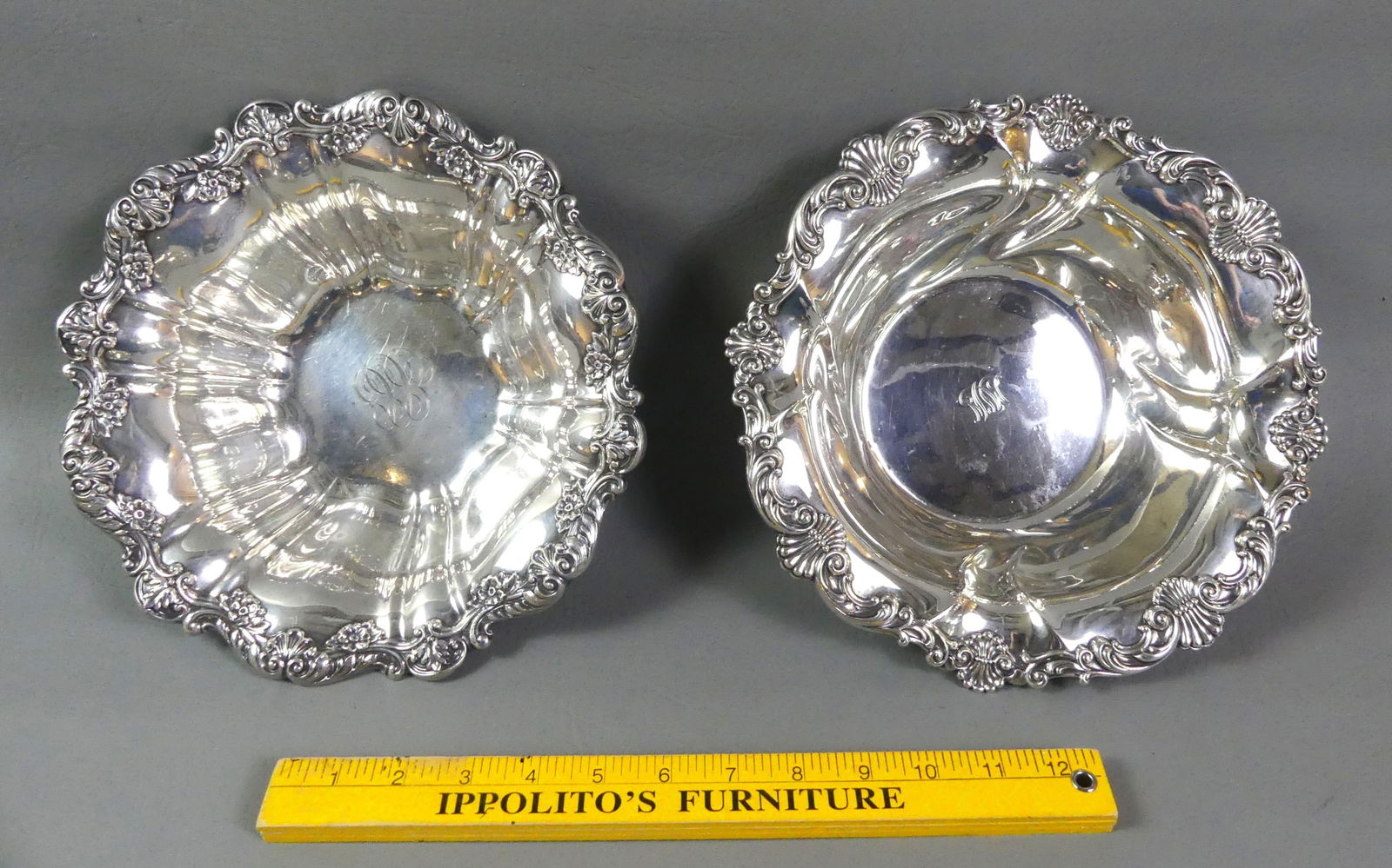 2 sterling silver repousse bowls. 1) Wide rimmed floral decoration bowl. Monogrammed. 9.5inTremont Auctions4.6(313)$100(1 bid)5 days Left