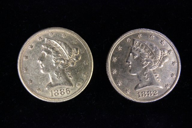 2 Five dollar gold pieces