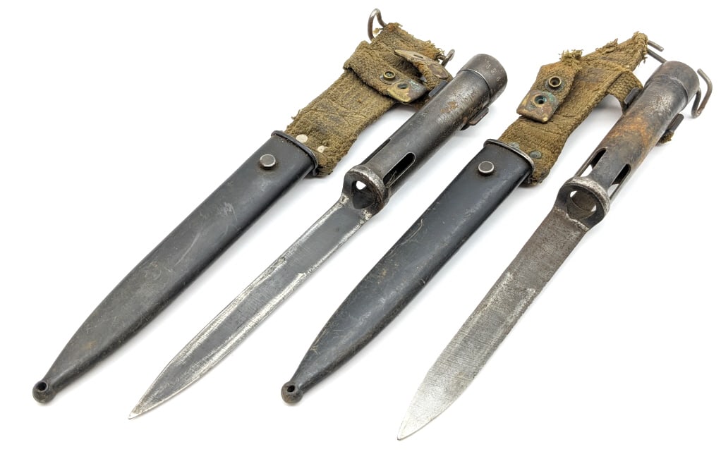 Two U.S. M 8-1 Bayonets, one with sheath, both are in very good condition. Will sell as one lot.Mar 29, 2026Two Visayan Ginunting swords & ScabbardsMar 28, 2026FOUR ANTIQUE HORN AND WOOD KNIVES. Largest 14cm long extended. (4) WE ARE UNABLE TO OFFER IN HOUSEMar 17, 2026Two Bayonets to include: Both are U.S. M7 with locking sheaths, measure 15 1/2" L, in very goodMar 29, 2026Turkish Mauser Bayonet W/ Scabbard - 10 Inch Blade16 Inch M1903 Bayonet W/ Canvas & Leather ScabbardYugo Type 44 Mauser Bayonet W/ ScabbardTwo 10 Inch M1 Garand Bayonets W/O Hardware UC & AFHGerman K98K 44 fnj Marked Bayonet W/ ScabbardU.S. M1904 Bolo & U.S. Springfield 1873 Bayonets6 days LeftTwo Bayonets to include: One is an M-5 A-1, complete with sheath in unused condition in its originalMar 29, 2026U.S. Model 1917 & U.S. Model 1898 Krag Knives6 days LeftBelgian FN FAL Bayonet W/ ScabbardWW1 - WW2 German K98 Bayonets (2pc)Mar 28, 2026Group of Military and Ka-Bar KnivesMar 28, 2026WW2 Bayonets, Japanese T99, Czech MauserMar 28, 2026
