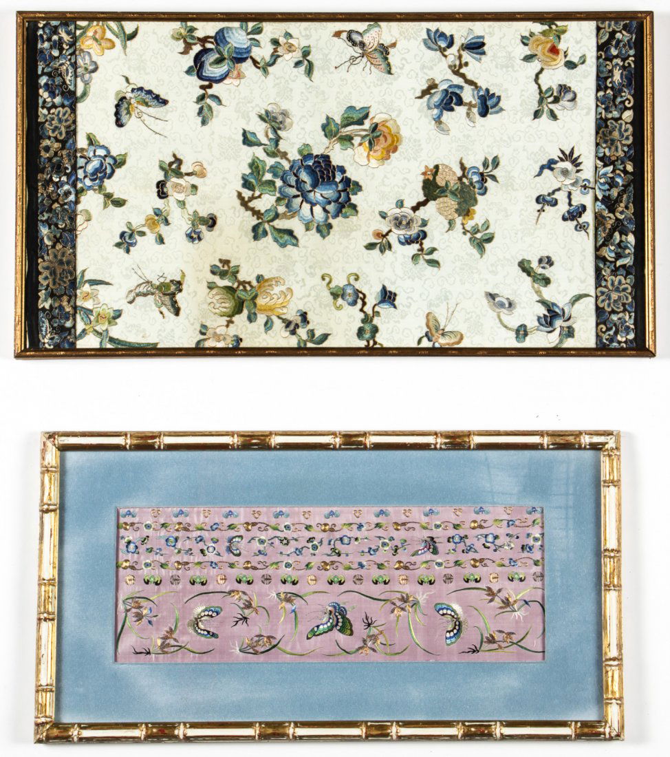 2 Framed Antique Chinese Silk Panels