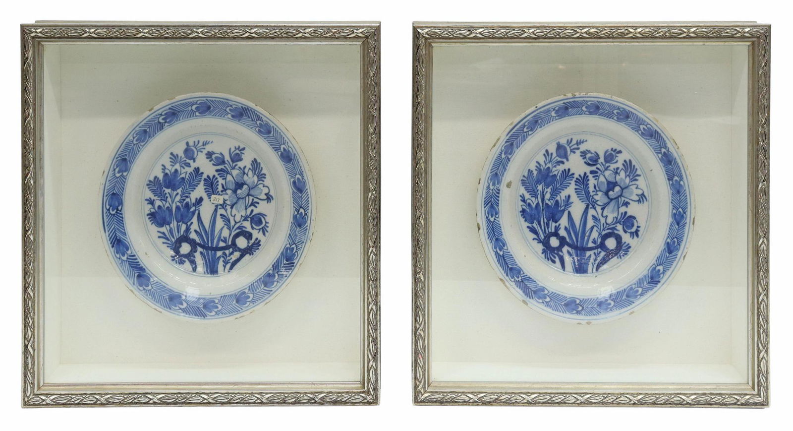 (2) FRAMED DELFT BLUE & WHITE FAIENCE PLATES