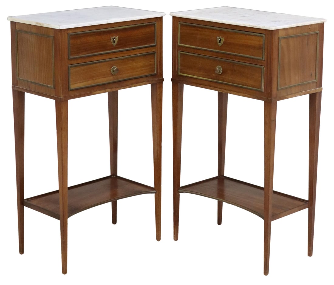 (2) FRENCH LOUIS XVI STYLE MARBLE-TOP NIGHTSTANDS