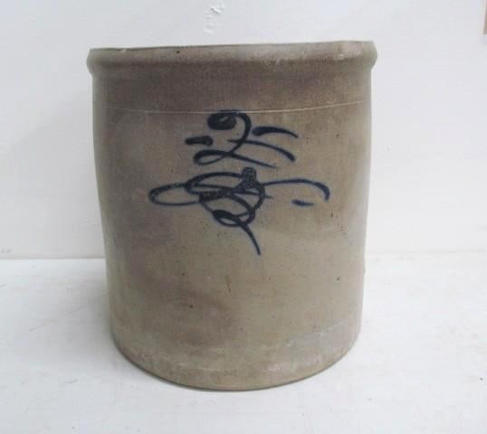 2 GALLON BLUE DECORATED STONEWARE CROCK