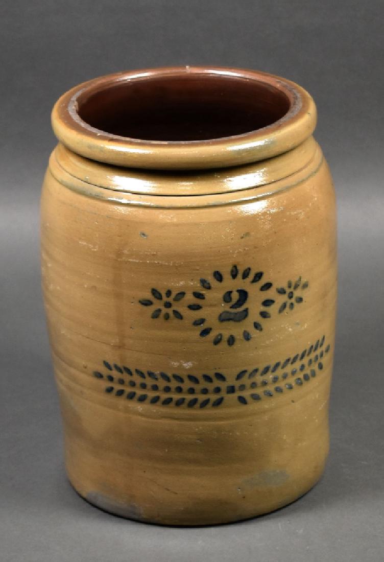 2 Gallon Pennsylvania Crock Flower DesignFeb 25, 2026Possibly North Carolina Stoneware JugFeb 25, 2026Early Salt Glazed Crock with Heavy Cobalt StencilFeb 25, 2026Minnesota Stoneware Ca.1883-1900Feb 25, 2026Stoneware Blue Decorated Jar, 1 gallon jar with nice glaze finish, 5"X9"Feb 24, 2026R. T. Williams blue decorated stoneware jar 2 gallon, New Geneva, PA, 8"X9"Feb 24, 2026Antique Blue Decorated Stoneware Crock, As Is1 day LeftStudio Pottery Decorated Jar6 days LeftStoneware Ovoid Jar, unmarked salt glaze but stamped 1 1/2 in a circle that is consistent w/those...Stoneware Ovoid Jar, unmarked, salt-glazed w/hand-painted cobalt blue brushed design (may be bru...2 handled blue decorated stoneware jar with thumbprint design, incised #3 near the applied handle,Feb 24, 2026Decorated Stoneware Jar6 days LeftRed Wing 2 Gallon Birch Leaf Butter Churn w/blue Union Stoneware oval, 3 very light hairline cracksStoneware Ovoid Jar, stamped T.P. Mead Portage Co. (Ohio), salt glaze w/cobalt blue accents & app...5 Gallon Stoneware Blue Banded and Lidded Crock DispenserMar 16, 20262 Gallon Cobalt Blue Decorated Stoneware CrockMar 02, 2026