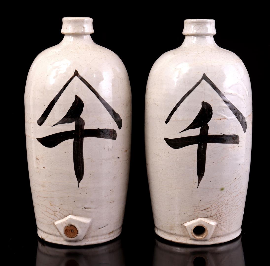2 glazed earthenware Asian storage bottles
