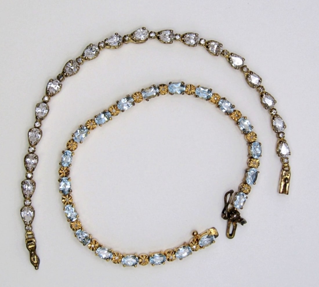 (2) GOLD TONE STERLING & GEM BRACELETS