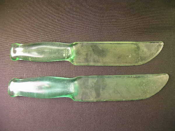 2 GREEN DEPRESSION GLASS KNIVES
