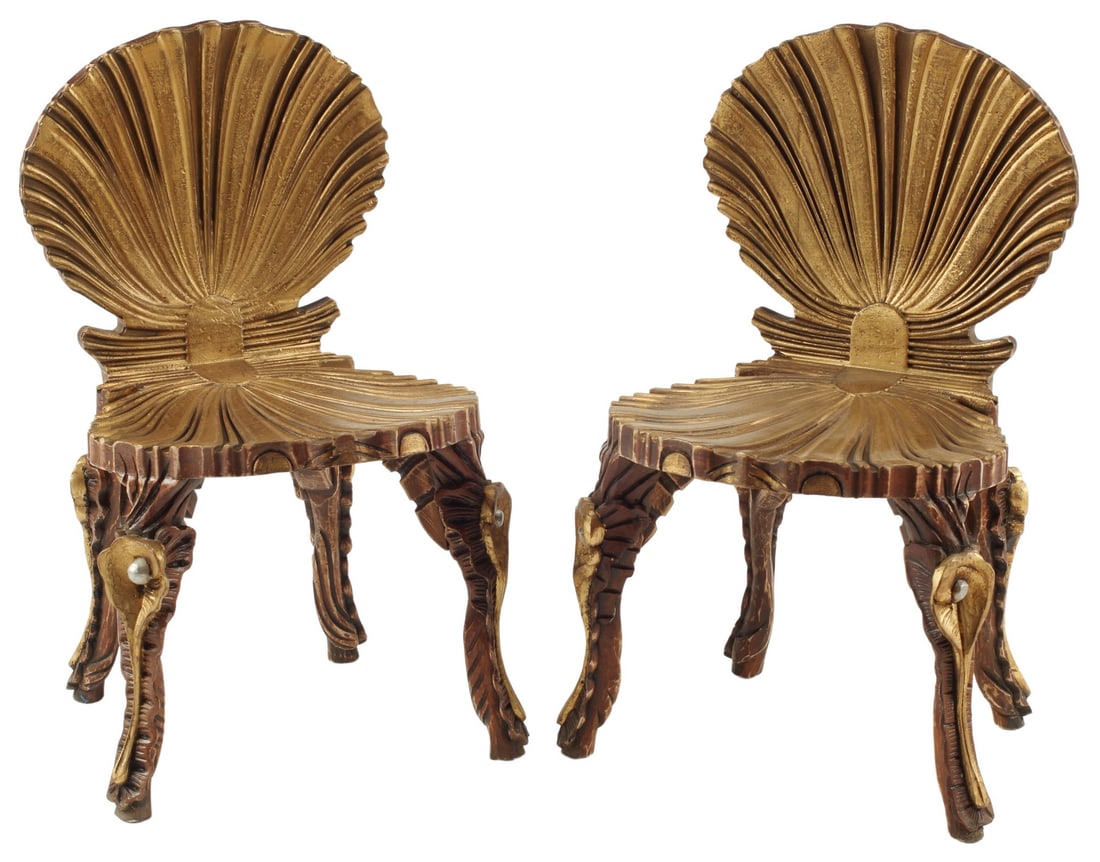 (2) GROTTO STYLE GILT SHELL-FORM SIDE CHAIRS