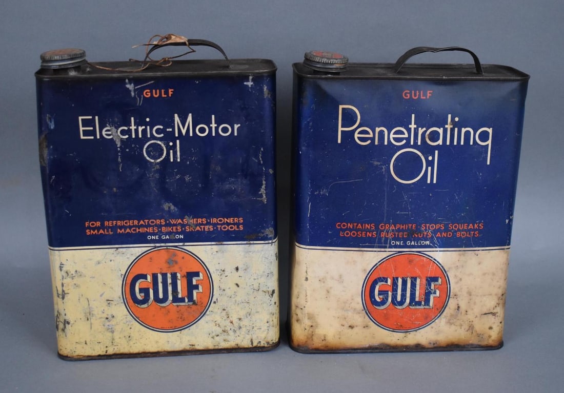 Acme Refining Corp. & Pioneer Oil Co. East Lube and Road King 2 Gal. Motor Oil CansMar 16, 2026Group of Two Delco Motor Oil Metal Cans 5 Gallon and Half GallonMar 21, 2026Gulf Supreme Motor Oil CansMar 20, 2026Gulflube H.D. Motor Oil CansMar 20, 2026Gulflube H.D. and Gulf Supreme Motor Oil CansMar 20, 2026Group of 2 Gulf Saphire & A Penn 5 Quart & 2 Gallon Oil Cans5 days LeftGroup of 2 Gulf Sapphire Two Gallon Oil CansMar 08, 2026Group of 3 Gulf Charcoal Lighter Fluid, and Valve Oil CansMar 08, 2026Group of 5 Gulf One Quart Composite Oil CansMar 08, 2026Group of 2 Sunoco Mercury Made Two Gallon Oil CansMar 08, 2026Gulf Five Gallon Metal Oil CanMar 08, 2026Group of 3 Gulf Valve Oil & Lighter Fluid Cans5 days LeftGroup of 2 Silver Shell Two Gallon Oil CansMar 08, 2026Group of 2 Mobiloil One Quart Metal and Aluminum Oil CansMar 08, 2026Case of Gulflube H-D Motor Oil Quart Cans w/ BoxMar 20, 2026Group of 2 Esso and Unexcelled One Quart Metal and Aluminum Oil CansMar 08, 2026