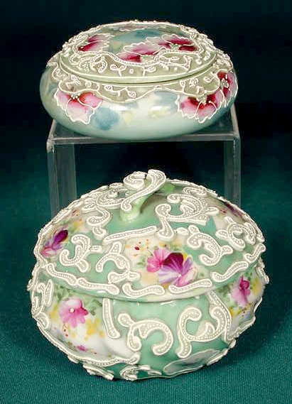2 Hand Painted Nippon Moriage Covered Jars NR