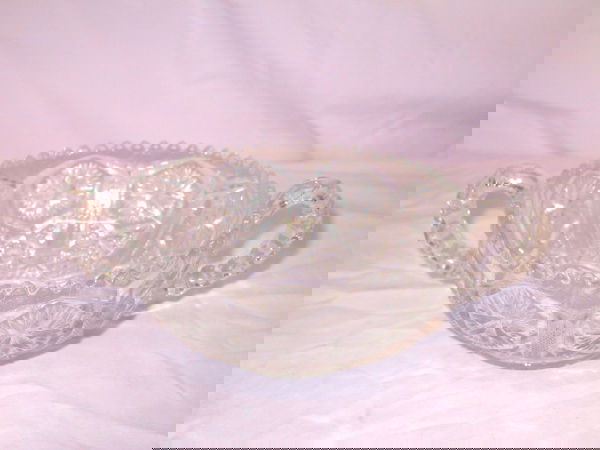 SoldTwo-Handled Four Division Bowl, American Brilliant CutTwo-Handled Four Division Bowl, American Brilliant Cut Glass 2.75" X 7" X 10" - Ribbon Star Pattern - Nice QualitySee Sold Price