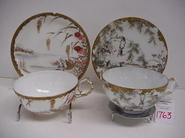 2 Handpainted Eggshell Porcelain Cups and Saucers