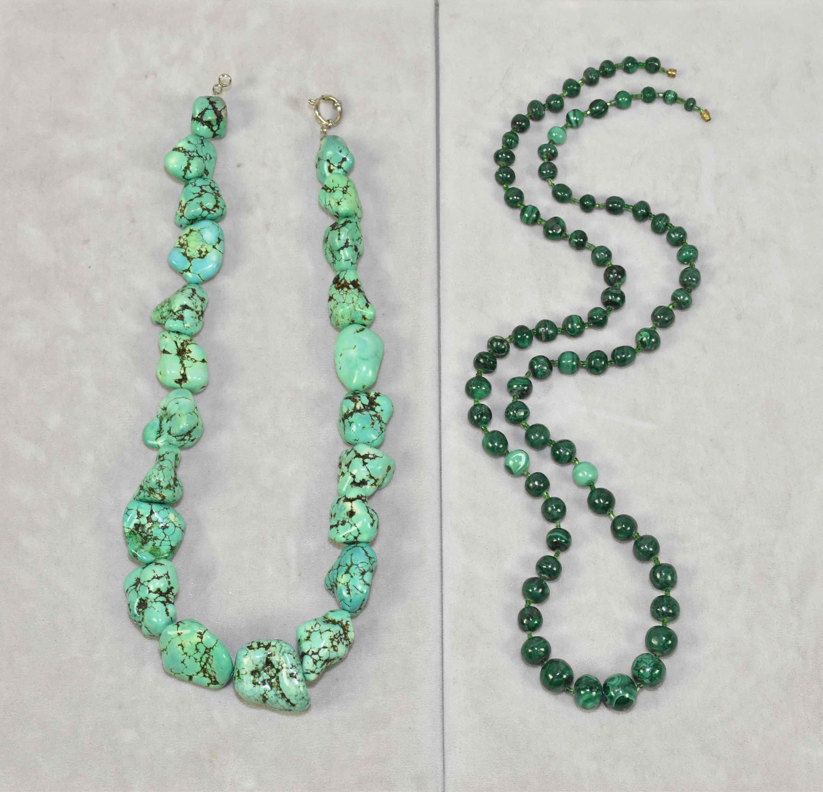 (2) HARDSTONE NECKLACES: malachite graduated bead -