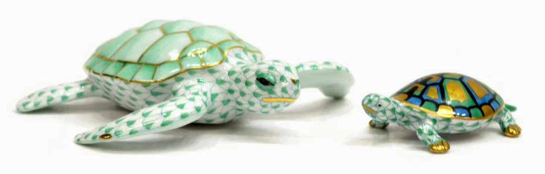 (2) HEREND PORCELAIN FISHNET PATTERN TURTLES