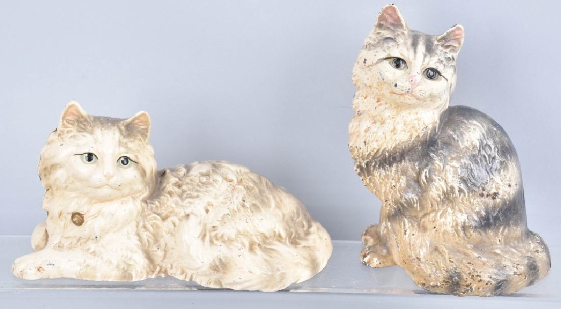 2 CAST IRON CAT DOORSTOPS, 1 SGND HUBLEY TALLEST 8 1/4"