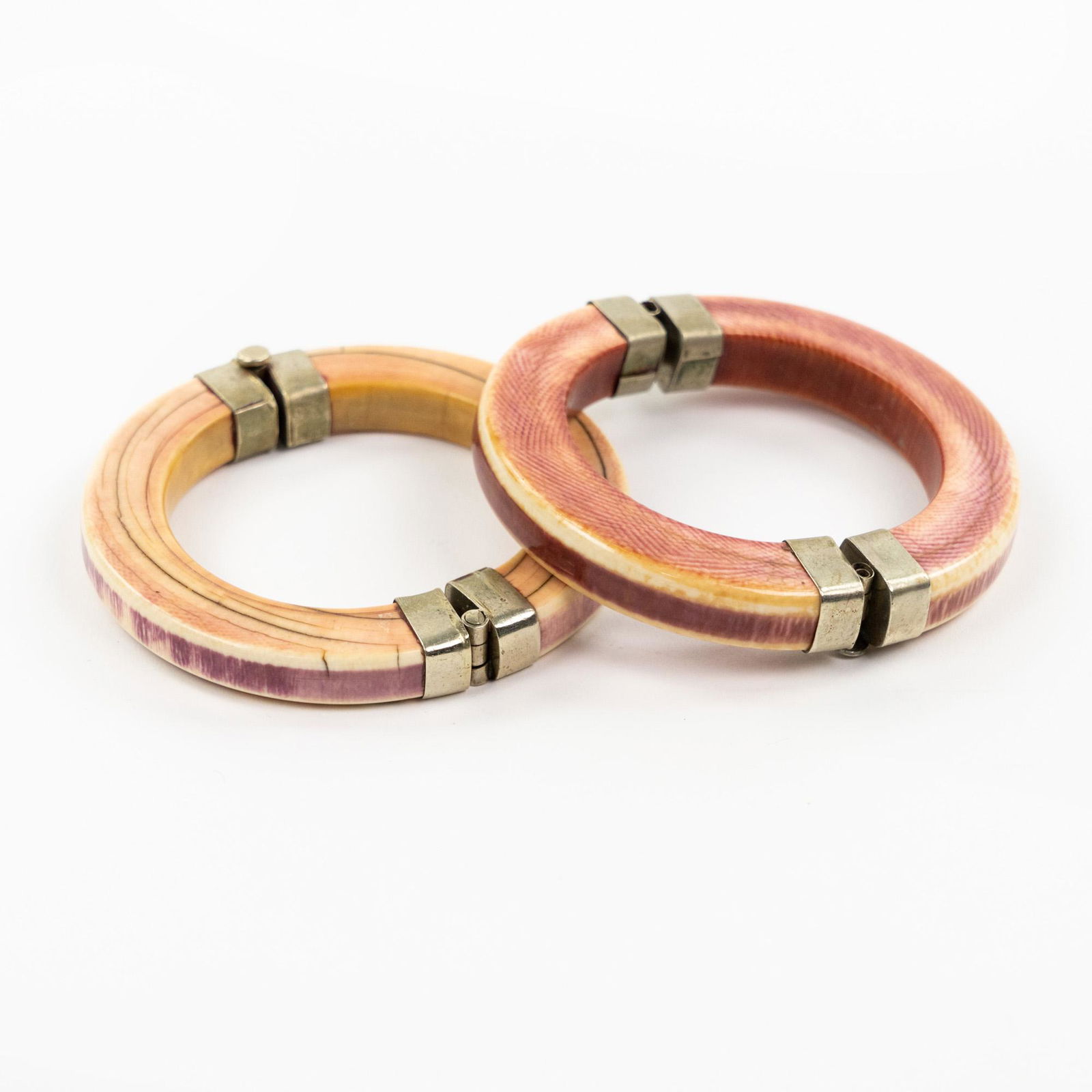 (2) Indian Bone Bangle Bracelets w/ Pull Pin Clasps