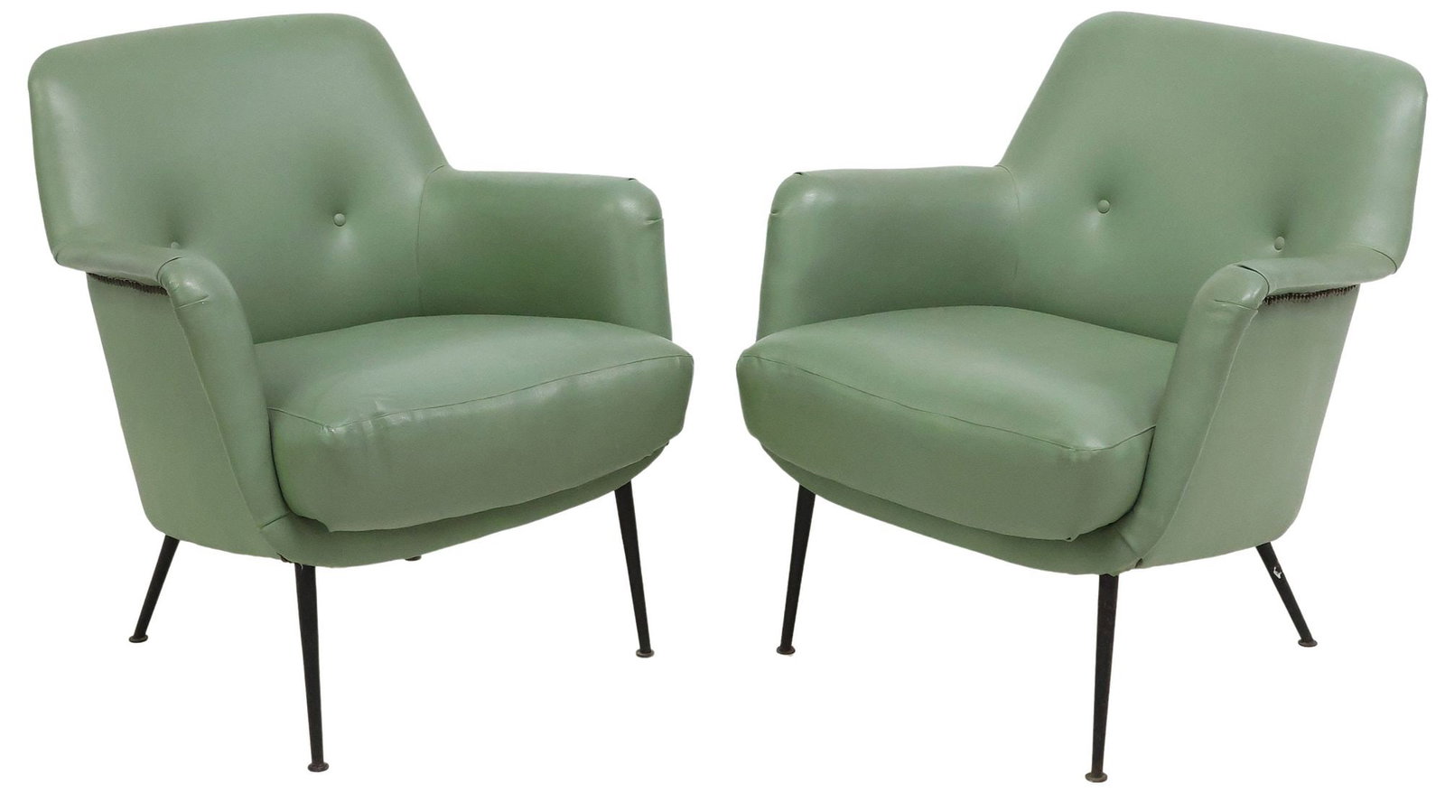 (2) ITALIAN MID-CENTURY MODERN UPHOLSTERED LOUNGE CHAIRS