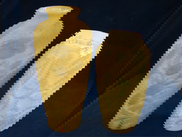 2 Items: 2 Phoenix Glass Vases With Embossed Flor