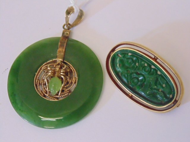 14k Yellow Gold Natural Carved Jade and Diamond Necklace PendantTaylor & Harris4.7(177)$3502 days Left