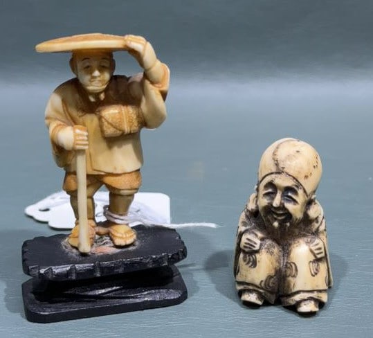 2 JAPANESE CARVED NETSUKE FIGURES