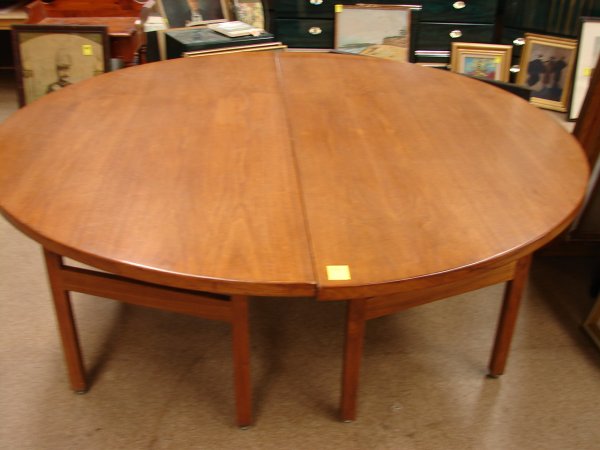 SoldJENS RISOM Design Round Dining Table. Unique leg stretcJENS RISOM Design Round Dining Table. Unique leg stretcher configuration. American Modern Walnut Table. -- Dimensions: H: 28 inches: W: 48 inches: D: 48 inches ---See Sold Price