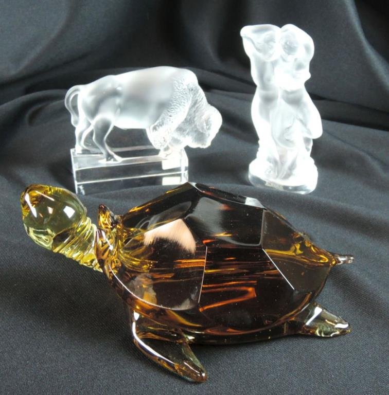 2 Lalique Crystal Figures & a Turtle
