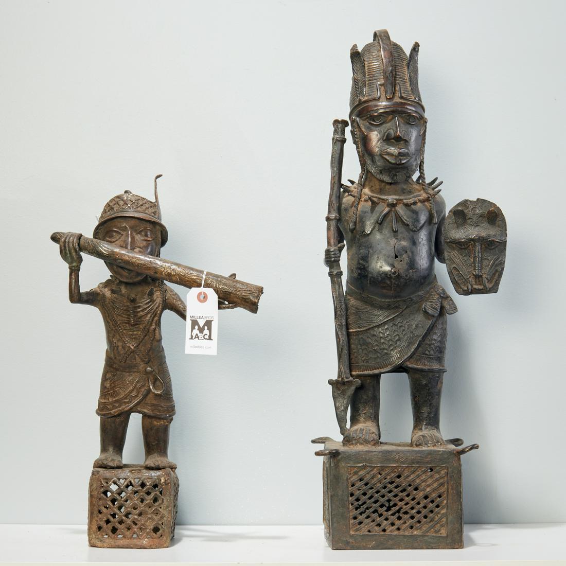 2 Benin Warrior Bronze Sculptures, Nigeria, H: 15", 19"Apr 14, 20262 Benin Bronze Court Musician Messenger Figures, H: 31", 33"Apr 14, 20262 Benin Bronze Warrior Figures, H: 33", 34"Apr 14, 20262 Benin Bronze Royal Figures, Africa, H: 33", 34.5"Apr 14, 20264 Benin Bronze Sculptures, Nigeria, H: 10"-14"Apr 14, 20262 Benin Bronze Helmet Masks Surmounted By A Figure On a Platform, H: 22", 23"Apr 14, 20267 Benin Bronzes of Warriors and Court Officials, H: 7"-9"Apr 14, 202618th Century Benin Patinated BronzeApr 25, 20262 Bamileke Bronze Tribal Figures, Cameroon, H: 9", 10"Apr 14, 2026Benin Bronze Statuette w/ InstrumentMar 29, 2026Benin Bronze Warrior Figure, Africa, H: 46"Apr 14, 20267 Benin Bronzes of Warriors And Court Officials, Nigeria, H: 7" - 12"Apr 14, 20262 Bakota Bronze Reliquary Figures, Africa, H: 47", 48"Apr 14, 2026Benin Bronze Warrior Figure, Africa, H: 51"Apr 14, 20262 Benin Bronze Head Sculptures, Nigeria, H: 9" 12"Apr 14, 2026Benin Bronze StatueApr 25, 2026