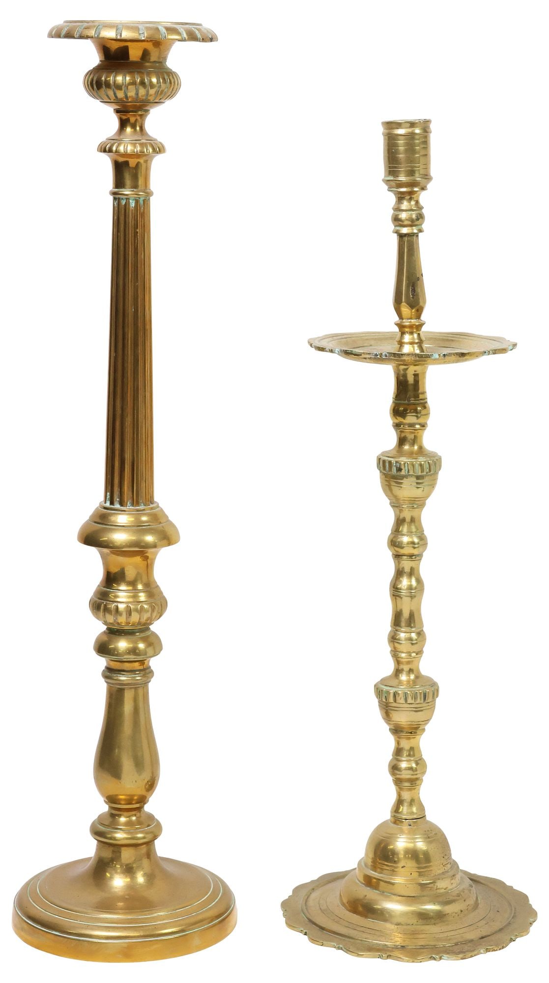 (2) LARGE BRASS TURNED-FORM CANDLESTICKS