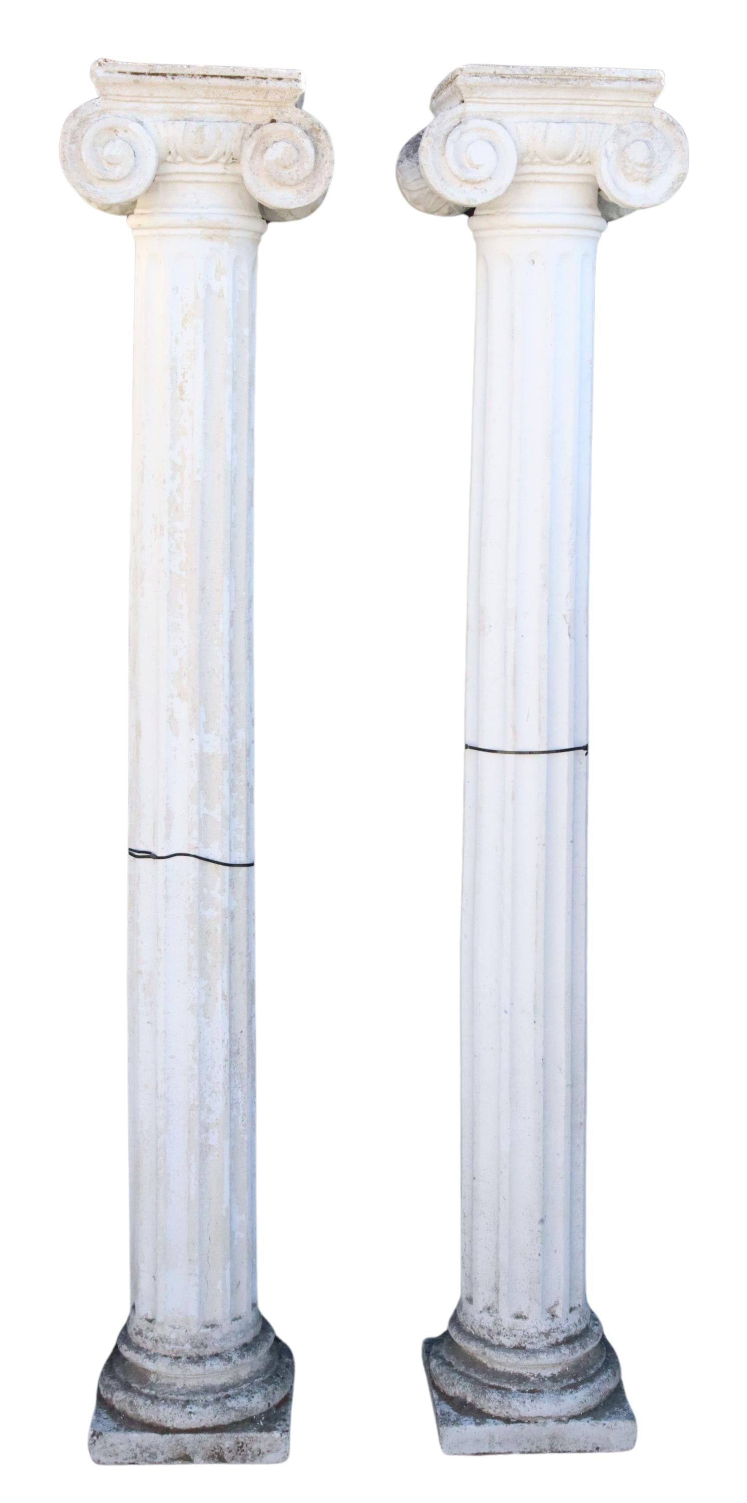 (2) LARGE CAST STONE GARDEN IONIC COLUMNS, 83"H