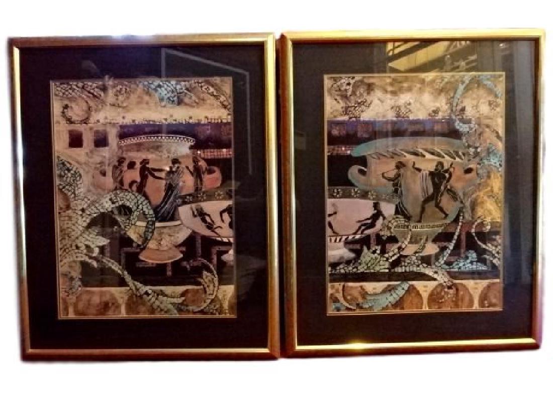 2 LARGE FRAMED PRINTS, CLASSICAL GRECIAN URNS, VERY
