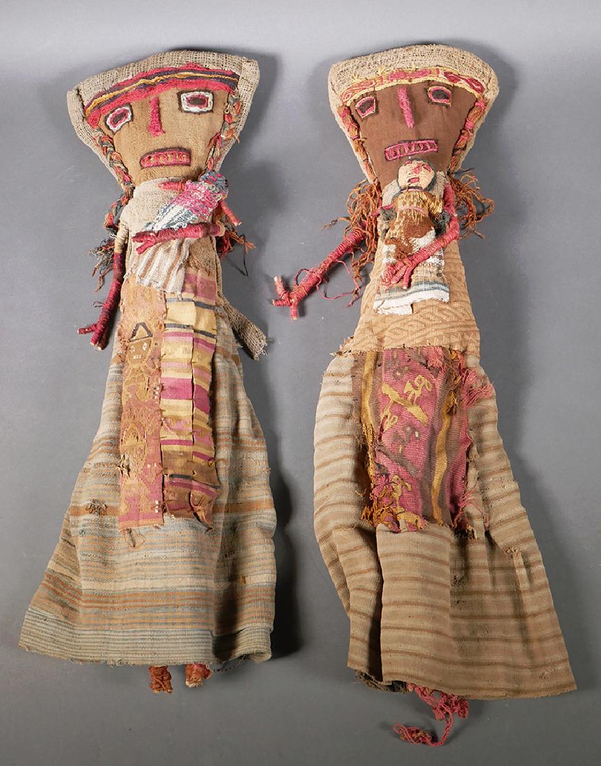 2 Large Peruvian Chancay Dolls, 22" Tall