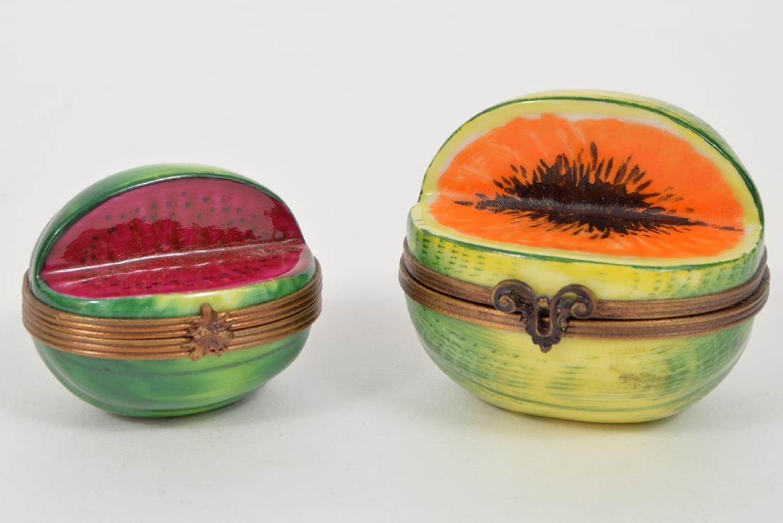 2 Limoges Peint Main Trinket Melon Boxes