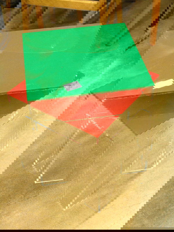 2 lucite cubic end tables