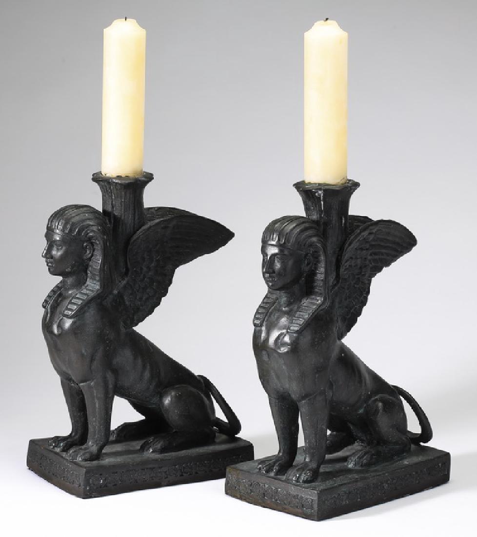 (2) Maitland-Smith sphinx candleholders, 10"h