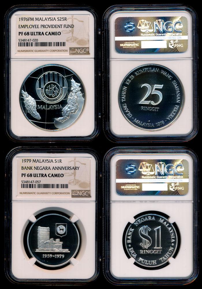 2 Malaysia 1-25 Ringgit 1976-79 proof NGC