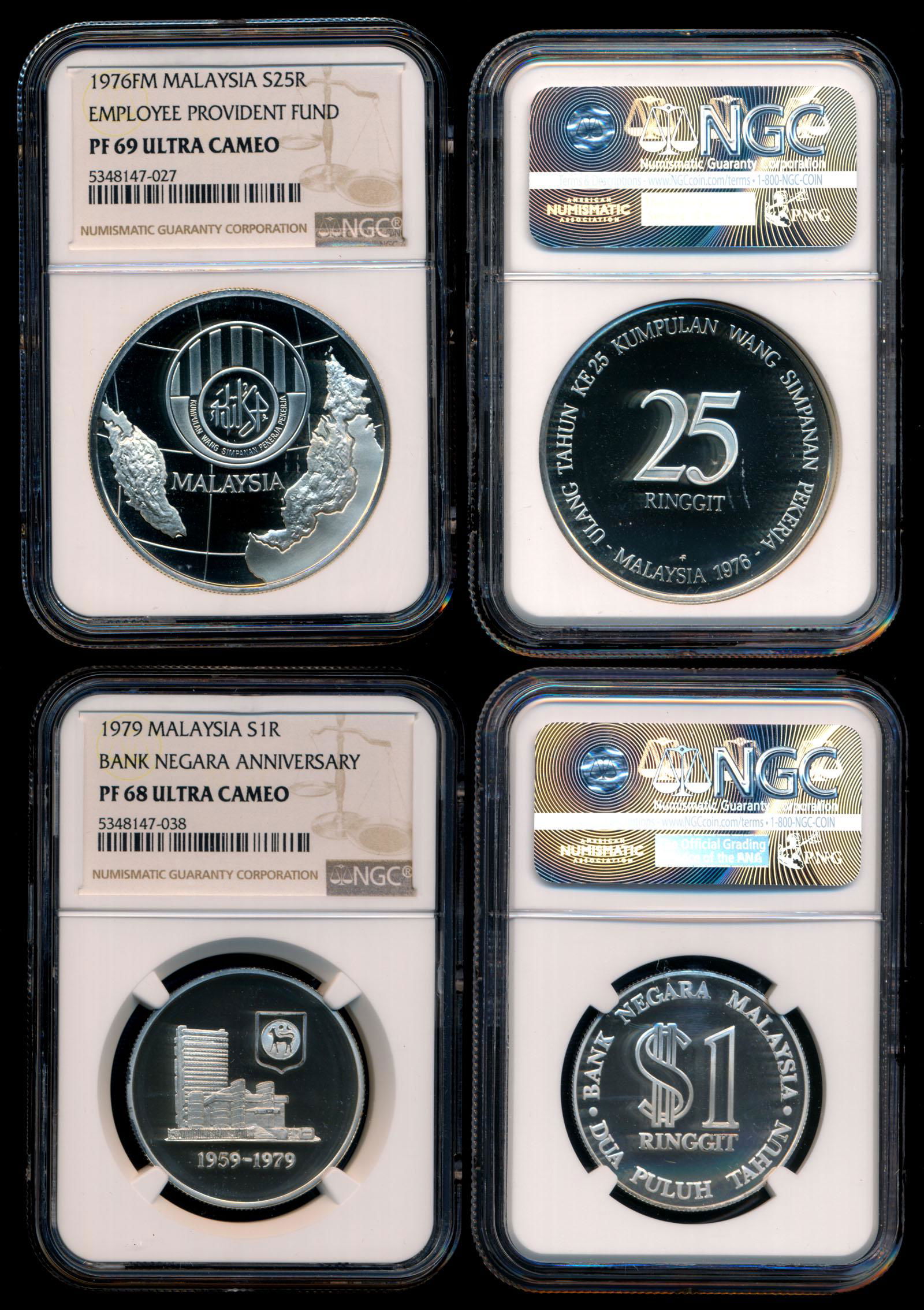 2 Malaysia 1-25 Ringgit 1976-79 proofs NGC