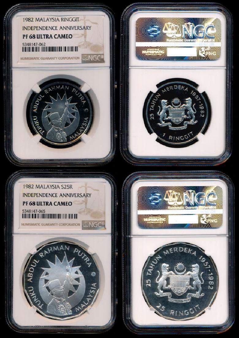 2 Malaysia 1-25 Ringgit 1982 proofs NGC