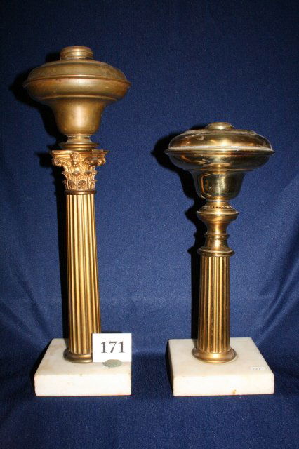 2 Marble Base Kerosene Lamps
