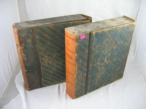2 MARBLED WOOD FOLIOS WITH PAMPHLETS RELATING