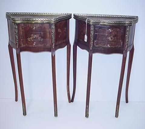Queen Anne Style Lowboy / Server & Display Vitrine2 days LeftLOUIS XV STYLE FAUTEUIL AND INLAID PEMBROKE TABLEMar 07, 2026Pair of Louis XV Style Cabinets Commodes or NightstandsLouis XV Style Marquetry Inlaid Brass Bound DeskPair of Louis XV Style Marble Top Marquetry Petite CommodesMar 12, 2026Pair of Louis XV Style Marble Top Stands.2 days LeftSet of 2 Mahogany Althorp Nightstands Model AL60057 with Brass Accents2 days LeftA PAIR OF WILLIAM IV AMBOYNA, EBONY, FLORAL MARQUETRY AND PARCEL GILT CIRCULAR OCCASIONAL TABLES4 days LeftPair of French Louis XV Style Marble-Top CommodesMar 07, 2026French Empire Style Mahogany Bedside Cabinets, 27 days LeftPAIR OF ITALIAN NIGHTSTANDSMar 07, 2026LATE FEDERAL DROP LEAF TABLE WITH A MAHOGANY GAME TABLEMar 06, 2026A Pair of Antique Pair of Knife Boxes, Or Cutlery BoxesMar 07, 2026Pair of Louis XV Style Cherry Nightstands, 20th c., H.- 27 in., W.- 15 in., D.- 12 3/4 in. (2 Pcs.)14 hrs LeftItalian Musical Side Table & Marquetry Chair.2 days Left2 Italian Burled Wood Rococo Style Bombe Chests.2 days Left