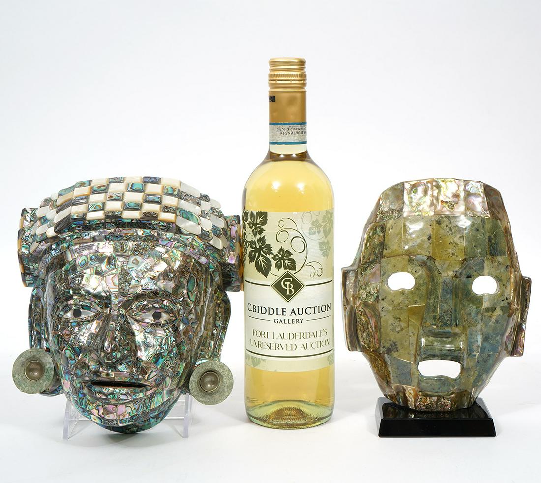 2 Mexican Abalone Aztec Style Masks