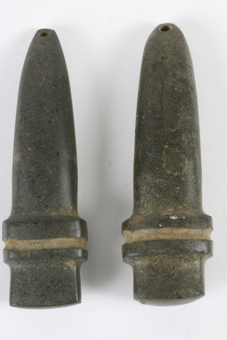 (2) MEZCALA DIORITE AMULETS / PENDANTS