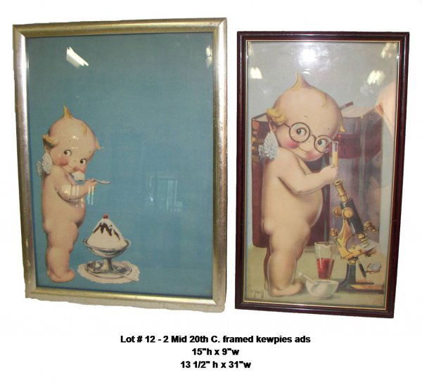 2 Mid 20th C. framed kewpies ads