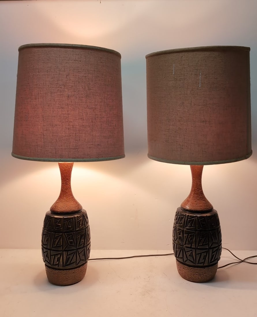ITALIAN MODERNIST Pair of Table Lamps1960syellow onyx, brass, wood, fabric shade, single sockets...Chris Haslev, Table Lamps, Stoneware, Denmark, 1960sDavid Cressey, Earthtone Glaze Ceramic, Large Table Lamps, USA, 1970sVintage Retro Green Table Lamp - PairMid Century Modern Pottery Base Lamps (PR)Mid century modern silver toned urn style table lampsMar 09, 2026Aldo Londi for Bitossi, pair ceramic table lamps1 day LeftVINTAGE BALL LAMPS, A PAIR6 days LeftAldo Londi, Table lamps, pairMar 12, 2026Denmark, Two floor lamps, 1950sMar 24, 2026Pair of 80's Off white Ceramic and Lucite Table LampsMODERNIST Pair of Table Lamps1970sglazed porcelain, two sockets, fabric over plastic shades, unm...Mid-Century Cork Lamps4 days LeftTWO MODERN TABLE LAMPSMar 10, 2026Pair of mid-century modern red stained glass table lamps2 days LeftSPANISH TABLE LAMPS, A PAIR6 days Left