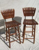 SoldMID CENTURY MODERN BAR STOOLS (2)Wood slat back; vinyl seats; iron framing; normal wear; H-43", L-18", G-VGSee Sold Price