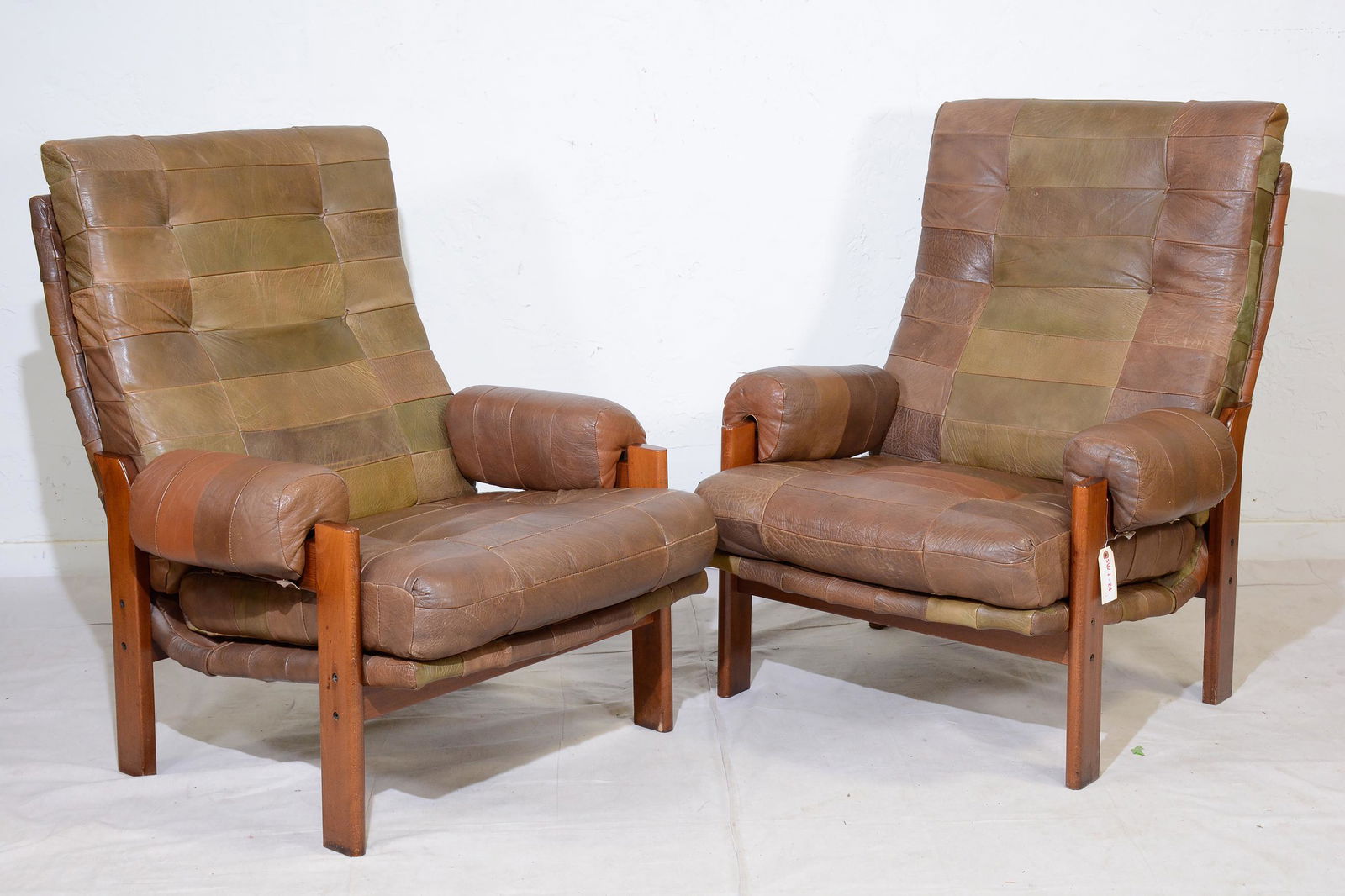 PAIR ATTR. BERG LEATHER CHAIRS & OTTOMAN 1970S