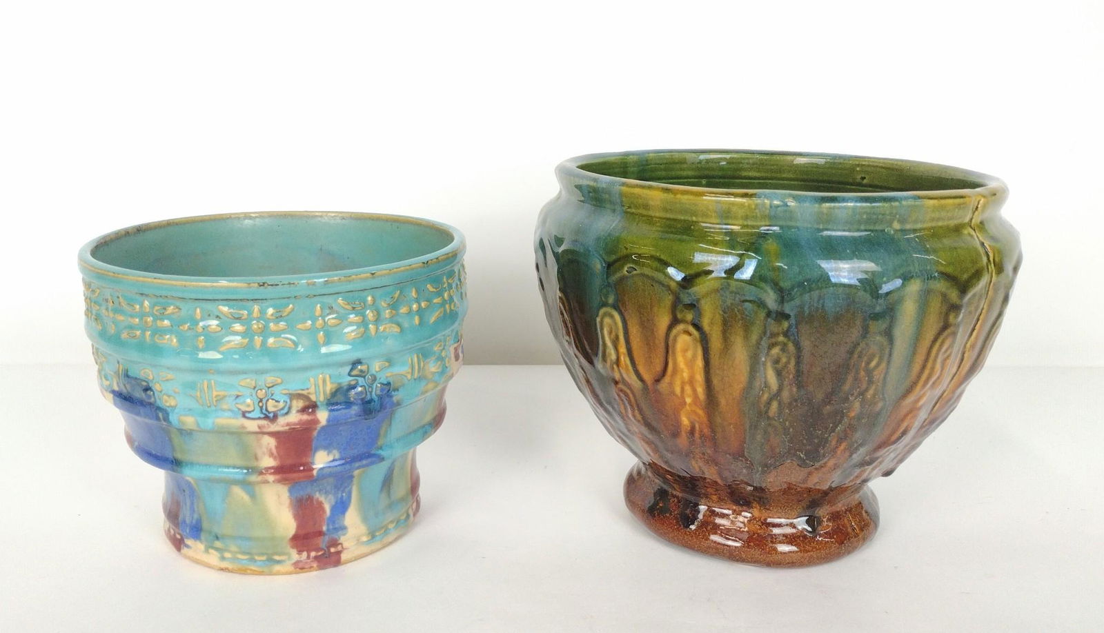 Vintage Brown-drip Green Glaze Pottery Planter