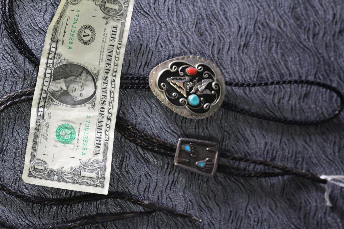2 Native American Silver Bolo Ties w/ Turquoise
