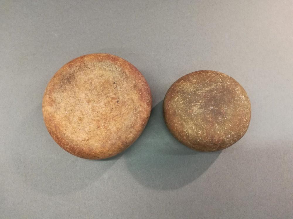 2 Native American Stone Discoidal Game Pieces.