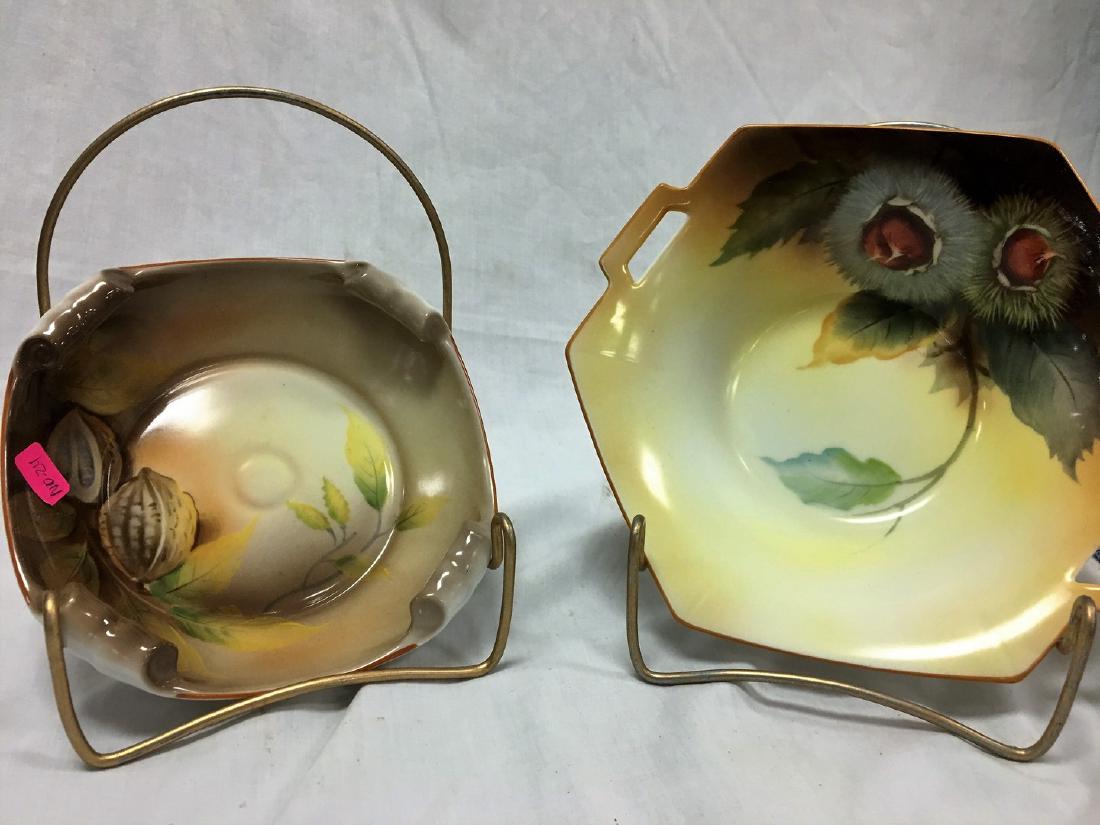 2 Nut Dishes, (1) rolled edge and (1) 2 handled
